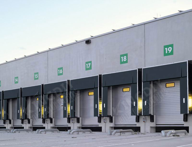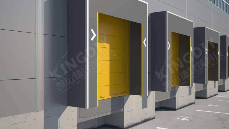 机械式门封帘板采用双层聚酯单纤维弹性强度织物,表面树脂涂层,侧翼两边有反光黄色引导条,边框采用铰链连接抗挤压。整体框架结构热镀锌处理,顶部框架呈倾斜面-便于排水。门罩由前架,后架和连接臂组成,表面采用经过阳极氧化处理的铝合金型材固定和装饰,美观大方。